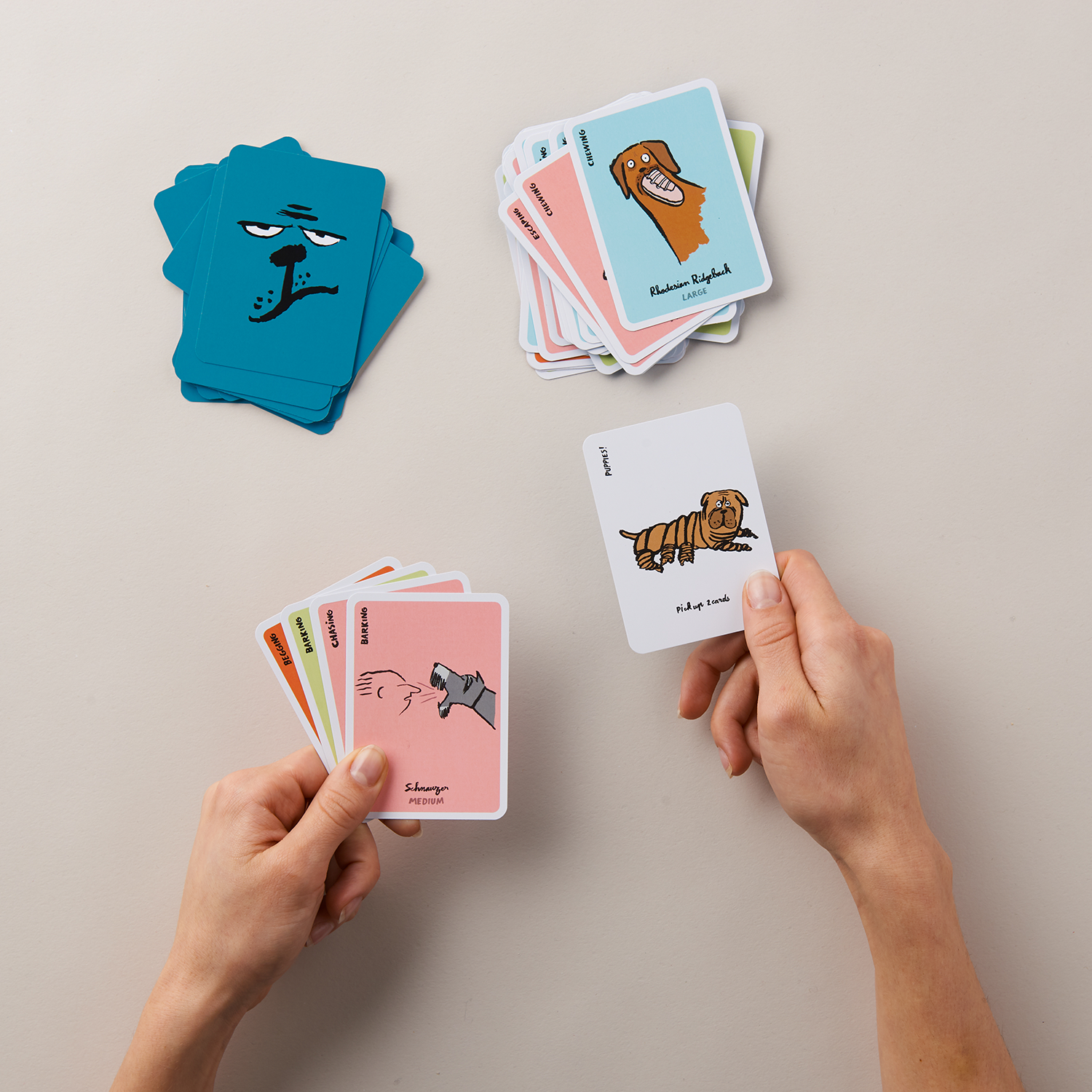 Dodgy Dogs is brilliantly illustrated with over 50 dogs brought to life by Jean Jullien. The aim of the game is to match the Dodgy Dogs by behaviour or by size until you have no cards left! 🐶 With 15 special cards for extra twists and turns, our super fun game is easy to learn and perfect for all ages.