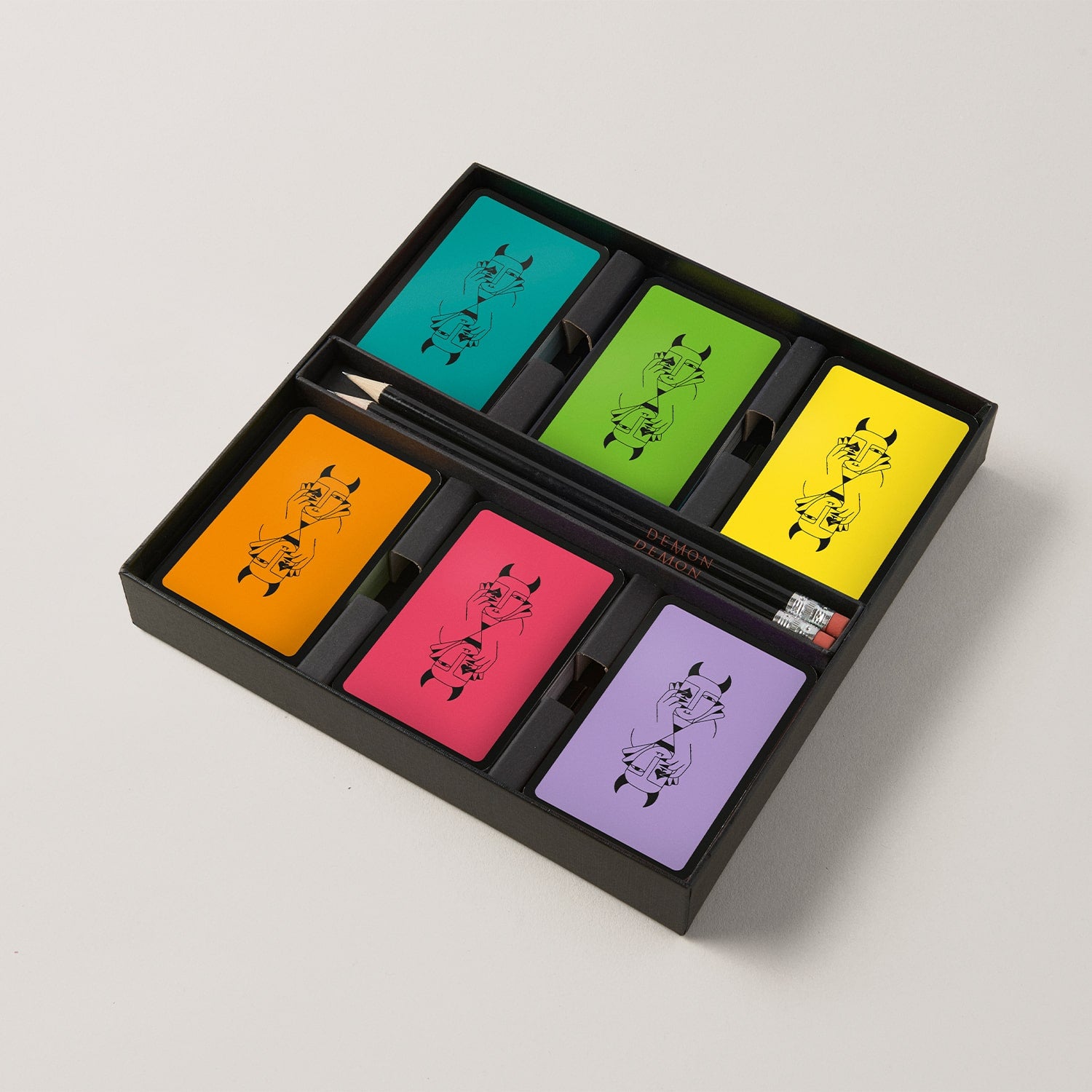 Our 6 Pack set has everything you need for a frenzy of fun, including rules, score pad and pencils.